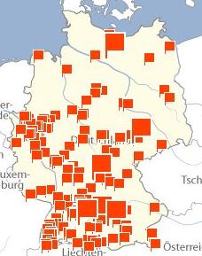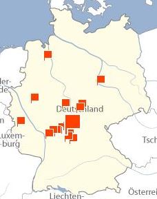 This display is merely to demonstrate the current (2018) distribution of our family names in Germany. This distribution will change over the years, but with many names you can easily see the clustered areas, which many times represent the "homeland" of this name.