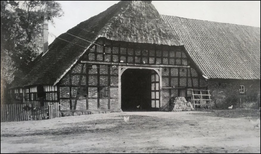 Originally known as Hinnak Haaken Number 15, this home is now located under a new address of Im Bruch 5 and owned by Heinrich Westermann. In the old tax records of 1695 Meßlingen, the home is registered to the family of Johann Heinrich Vortmeyer who owned three horses, four cows, one Rind (beef?), two calves, and two piglets. He had owned 16.5 morgen of seed land. A morgen at that time was roughly equivalent to .67 acres, so he owned 11 acres in all.