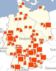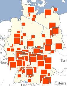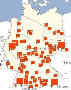 This display is merely to demonstrate the current (2018) distribution of our family names in Germany. This distribution will change over the years, but with many names you can easily see the clustered areas, which many times represent the "homeland" of this name.