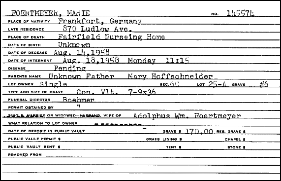 3322 Bishop Street Front (Until 1944) 3322 Bishop Street Rear (Until 1944) 870 Ludlow Avenue 1947 - 1958